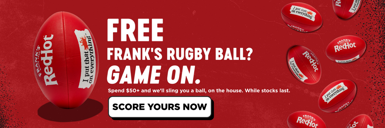 For the serious die-hard fans of Frank’s (you know who you are), we have a sizzling new range of merch to kick things up a notch. Now you can really you put that s**t on everything. Wear it, carry it, drink from it, and lie on it. There’s something for every Frank’s fan!